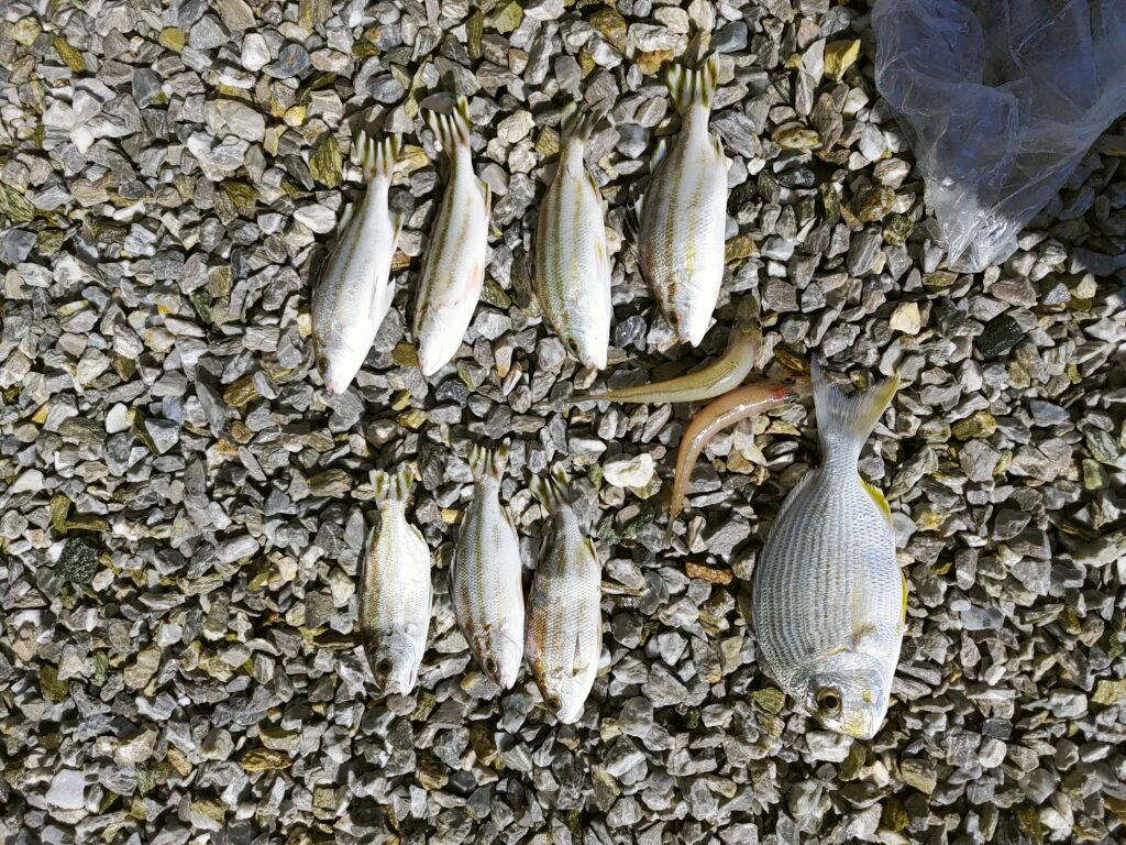 2024年10月13日の釣果 2024年10月13日 最終更新日時 : 2026年1月18日 harpsound1 魚種:ヘダイ、シロギス、シマイサキ 釣果時間:10:38 潮汐:若潮 潮位:干潮後35cm フィッシングベイト:アオイソメ ロッド:未記録 リール:未記録 天気:晴れ 水温:未記録 \ 最新情報をチェック / FacebookXCopy